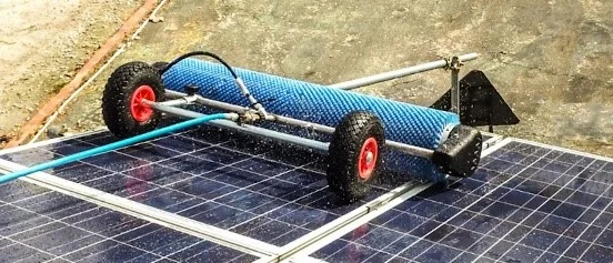 - uno adatto per i moduli sopra tetto con massa inclinazione (<20°C) radiocomandato dotato di una spazzola rotante messa in funzione da due motorini elettrici a batteria